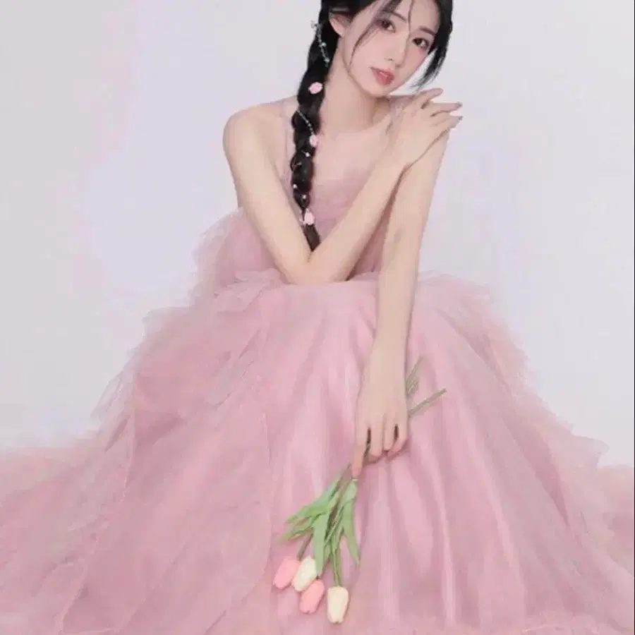 결혼식 촬영 시 착용했습니다. 공원에서 촬영했기 때문에 드레스 밑단이 땅에 쓸려 약간의 마찰이 있었지만, 깨끗한 상태입니다. 신경 쓰이는 분은 구매를 자제해주세요!!! - 색상: 핑크 - 스타일: 프릴 - 소재: 튤 - 디자인: 슬리브리스 - 특징: 롱 기장 사이즈는 XXL입니다! 사이즈감 표를 확인해주세요. ※ 사진 8번째에 있는 드레스 안에 볼륨을 주기 위해 착용하는 프릴도 세트로 함께 드립니다. 사이즈 - XL(LL)