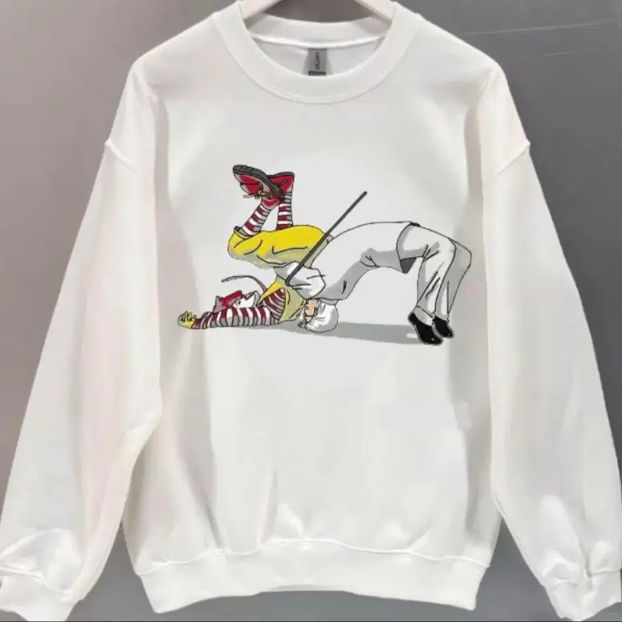 남녀 공용 숙명의 대결 패러디 재미있는 밈 맨투맨 트레이닝복/화이트