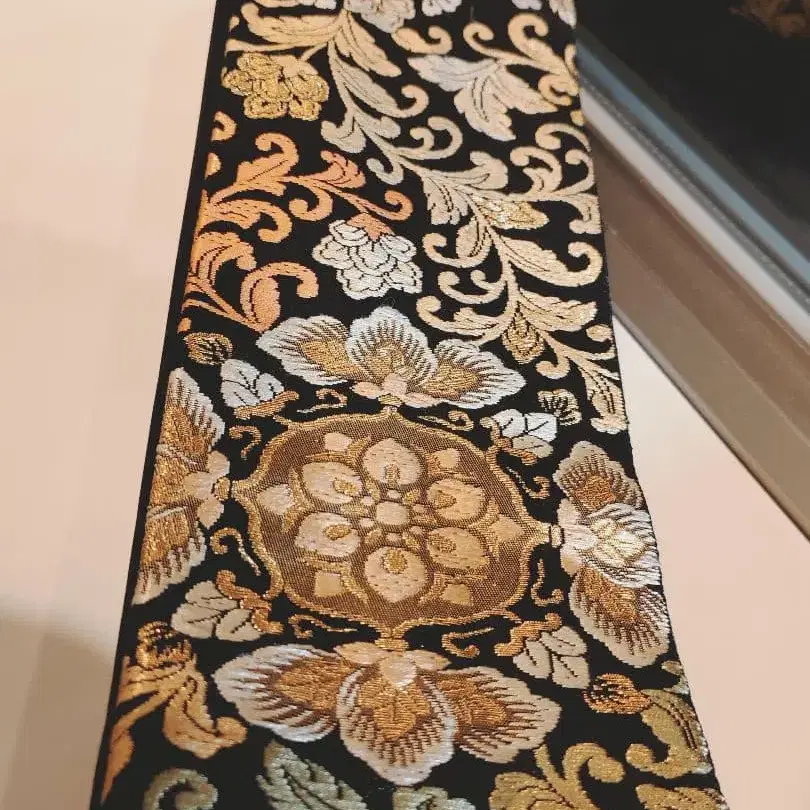 골드 컬러와 블랙 컬러의 물결무늬 남성용 오비 구옥 고전 패턴