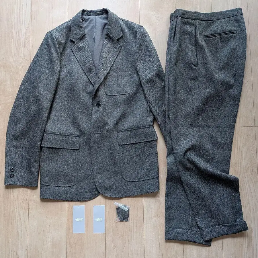 *졸업식과 입학식에 착용했으며, 데미지 없이 깨끗한 상태입니다. *색상: 그레이 헤링본 *사이즈: M (실측치수 자켓: 가슴 너비 51, 기장 70, 화장 84, 팬츠: 허리 80, 인심 67, 밑단 폭 18, 더블 폭 4) *밑단 기장 수선 등은 하지 않았습니다. (오리지널 그대로입니다.) [디테일] 원단은 폴리에스테르 소재를 울 트위드 같은 질감으로 표현하여, 주름이 잘 생기지 않고 모양이 망가지기 어려운 사양입니다. 자켓은 3버튼 단회전, 플랩&패치 포켓, 센터 후크 벤트입니다. 팬츠는 1플리츠, 테이퍼드, 더블 마감, 허리에 코드 탑재입니다. *가격 인하 불가합니다. *즉시 구매 OK!