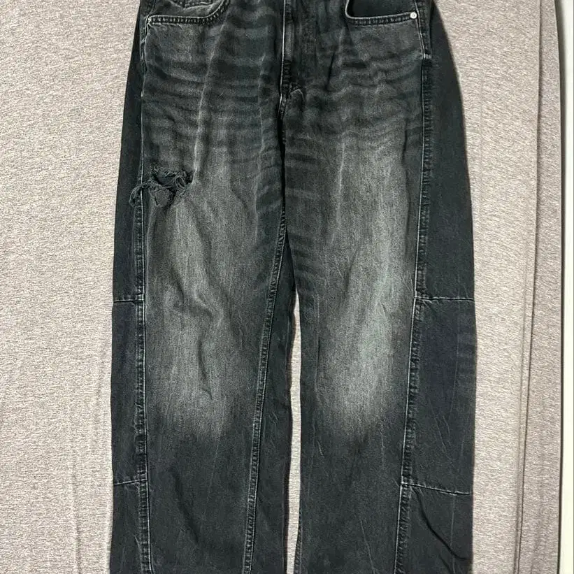 ZARA 데미지 가공 블랙 와이드 레그 데님