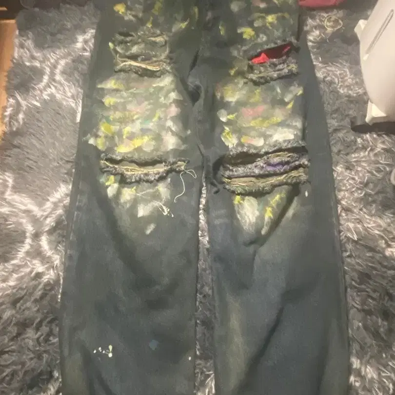 BASKETCASE GALLERY 페인트 가공 데미지 데님 청바지