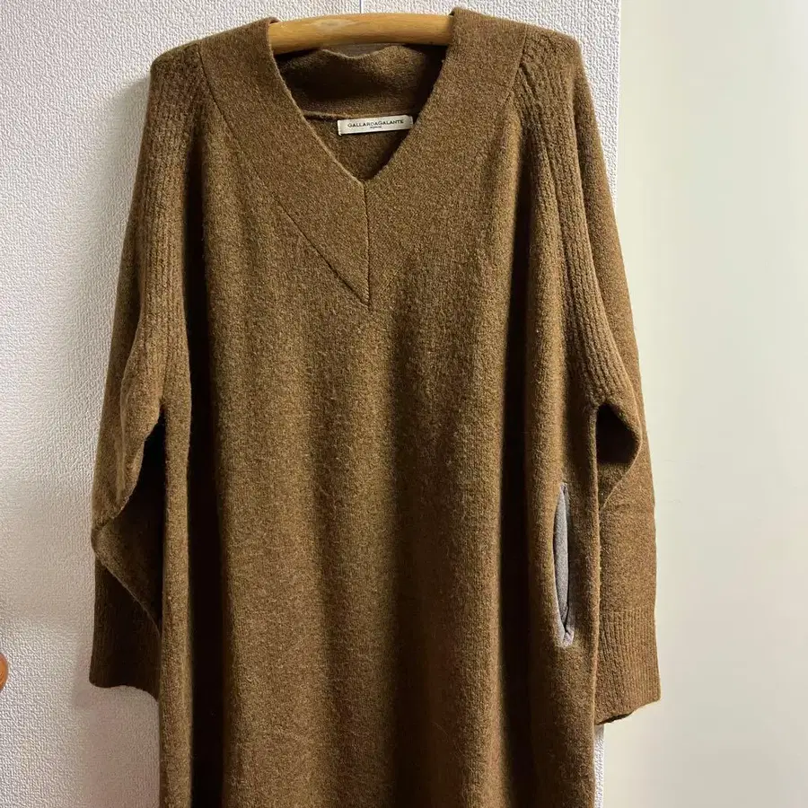 브라운 V넥 니트 원피스, 캐주얼 스타일에 최적. - 브랜드: GALLARDAGALANTE - 색상: 브라운 - 디자인: V넥 긴팔 - 스타일: 캐주얼 - 소재: 니트