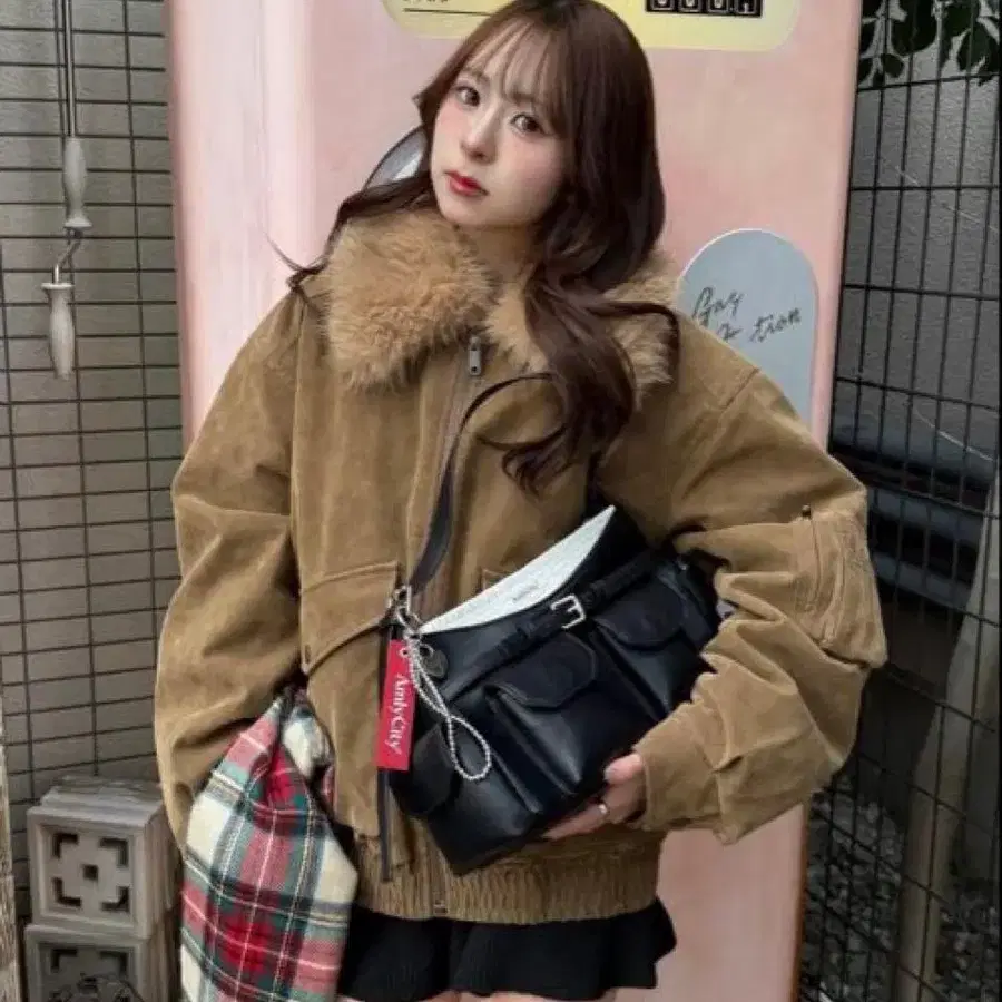 EMODA 싱글 미니 보아 블루종 브라운