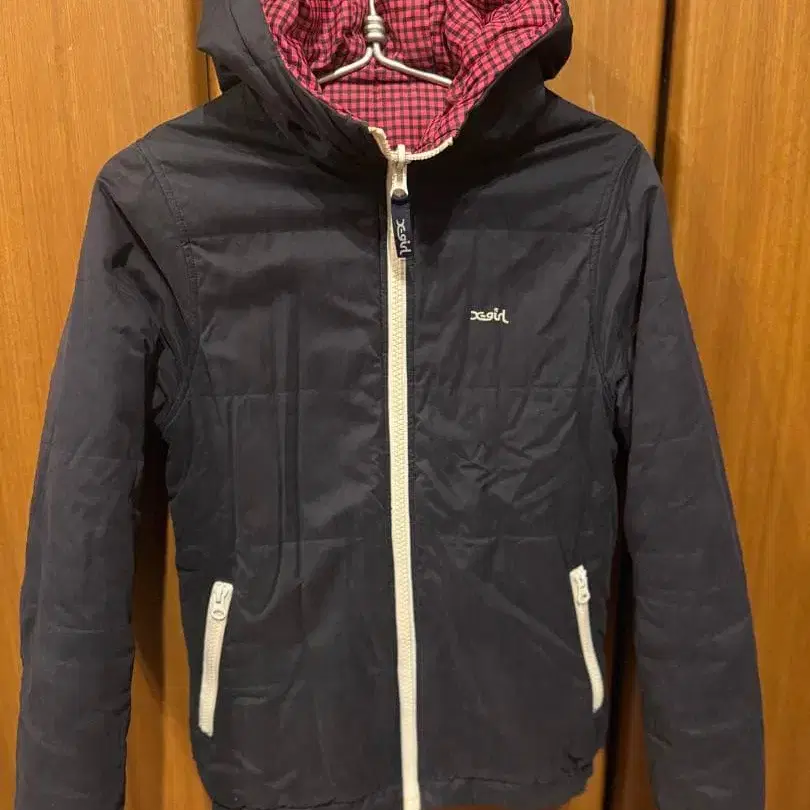X-girl 리버서블 자켓 네이비/핑크 체크 마마 코트