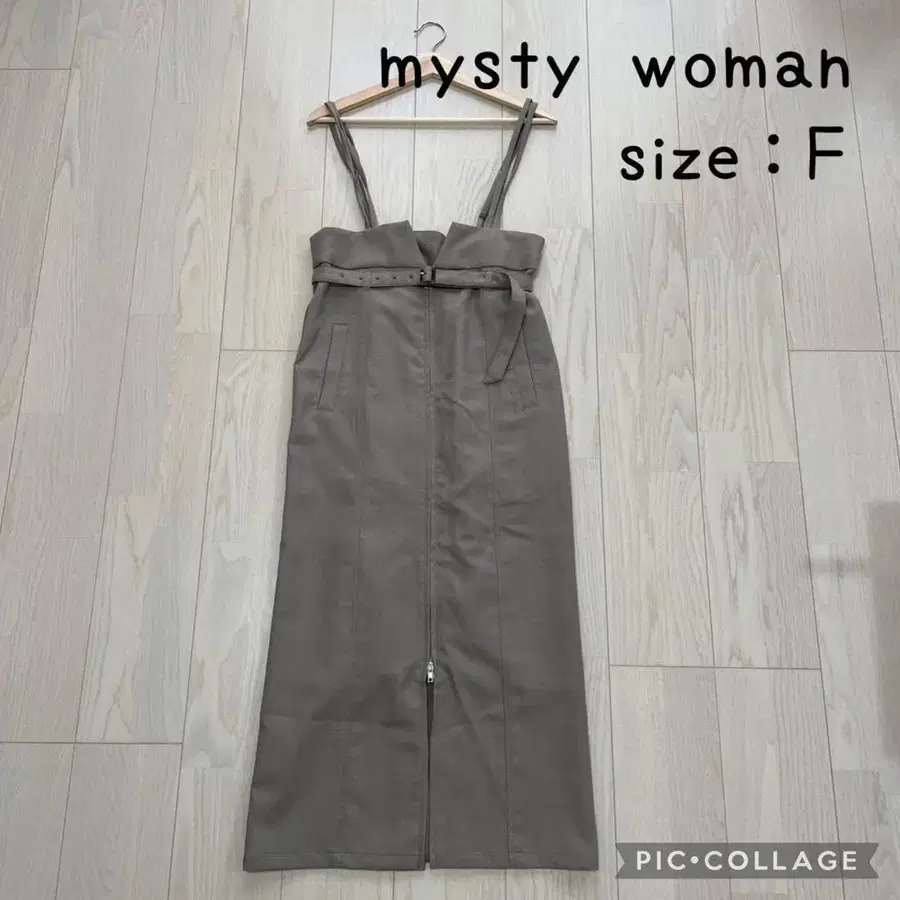 자동 번역되었어요. 원문보기mysty woman (미스티우먼)의 프론트 ZIP 서스펜더 스커트입니다.