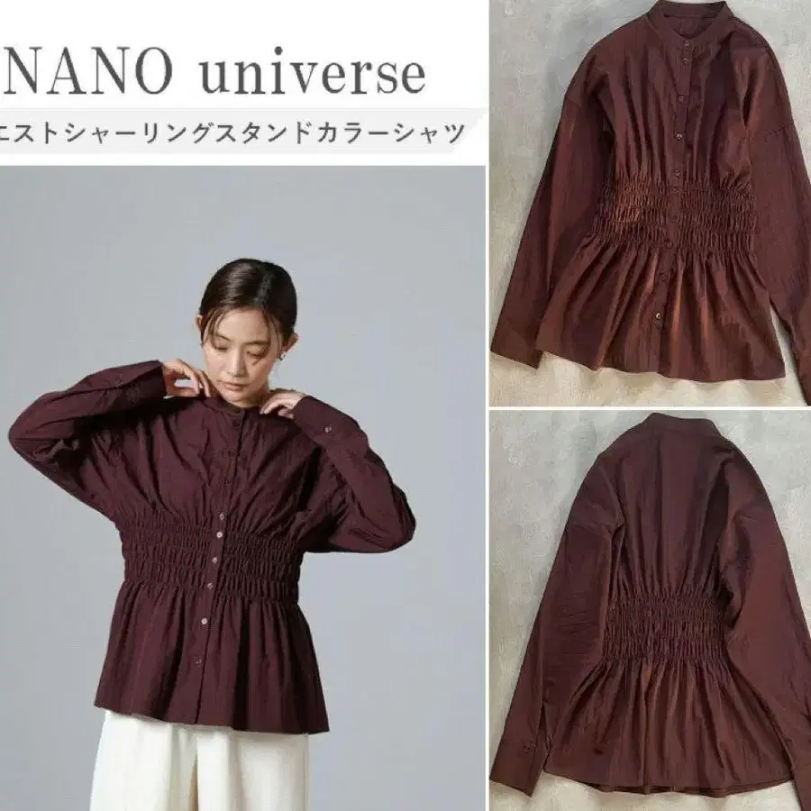허리 셔링 디자인의 버건디 긴팔 셔츠, 스타일업 효과. - 브랜드: NANO universe - 색상: 버건디 - 디자인: 허리 셔링 스탠드 카라 셔츠 NANO universe 나노 유니버스 24AW 허리 셔링 스탠드 카라 셔츠, 단정해 보이는 디자인, 온/오프 겸용, 스타일업 효과, 세탁기 사용 가능, F 사이즈 ■ 관리번호 [ 2508-0103-0009 ] ■ 브랜드: NANO universe ■ 아이템: 허리 셔링 스탠드 카라 셔츠 ■ 색상: D.PURPLE ■ 소재: 폴리에스테르 72%, 나일론 28% ■ 부속품: 없음 ■ 사이즈: Free (가슴 너비 63cm, 어깨 너비 61cm, 기장 65.5cm, 소매 길이 49.5cm) 허리 셔링 디자인의 다크 브라운 셔츠. 스타일업 효과가 있으며, 세탁기 사용 가능. - 브랜드: NANO universe - 색상: 다크 브라운 - 디자인: 허리 셔링 스탠드 카라 셔츠 - 소재: 바스락 소재 - 특징: 스타일업 효과 - 세탁: 세탁기 사용 가능 방문해 주셔서 감사합니다.