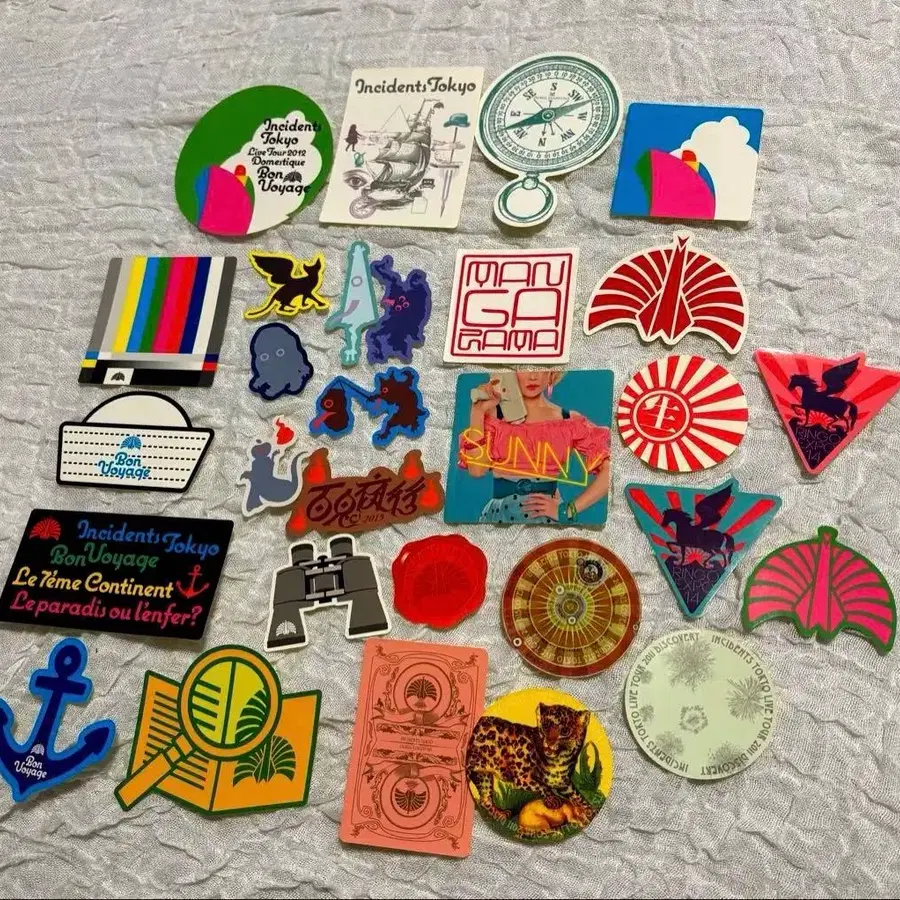 이미지 1번째 장 위쪽 단의 왼쪽에서 2번째 화이트 스티커는 가장자리에 약간 색바램이 보이는 것 같습니다.