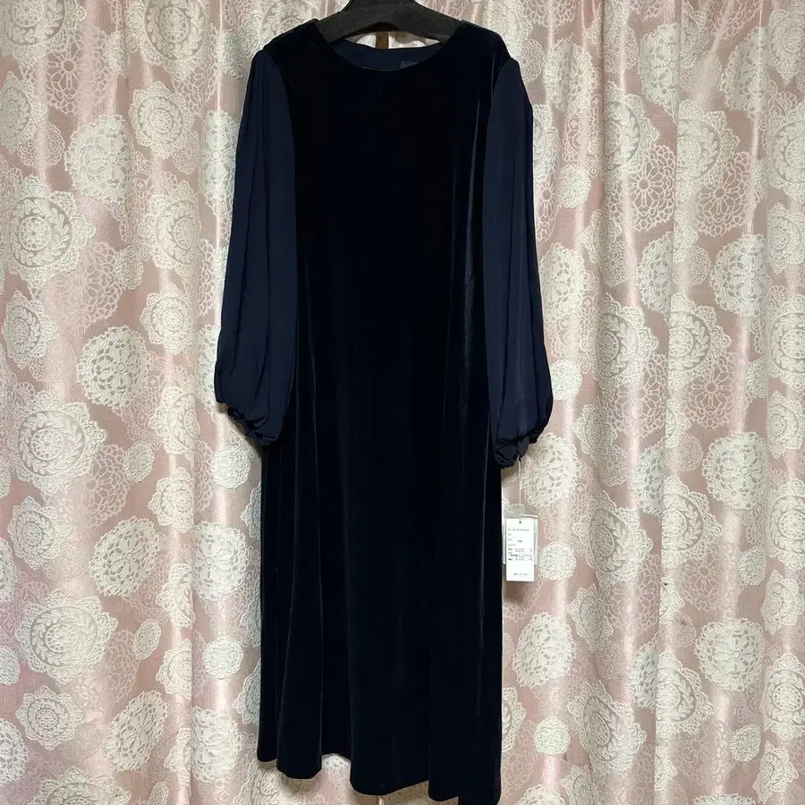 네이비 벨벳 소재, 펄 버튼이 달린 롱 원피스 ❤️