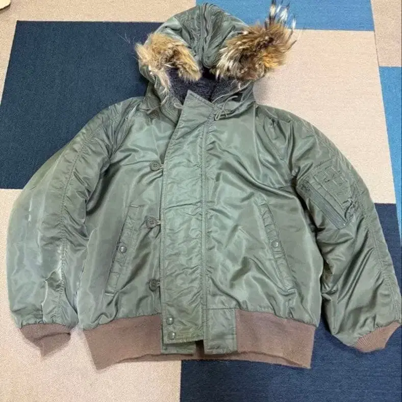 퍼가 달린 후드와 보아 옷깃이 특징인 올리브 그린 색상의 MA-1 자켓. - 색상: 올리브 그린 - 후드: 퍼가 달린 후드 - 안감: 보아 소재의 옷깃 - 소매: 리브 편직 소매 방문해 주셔서 감사합니다. 사이즈 - M 사이즈 - L