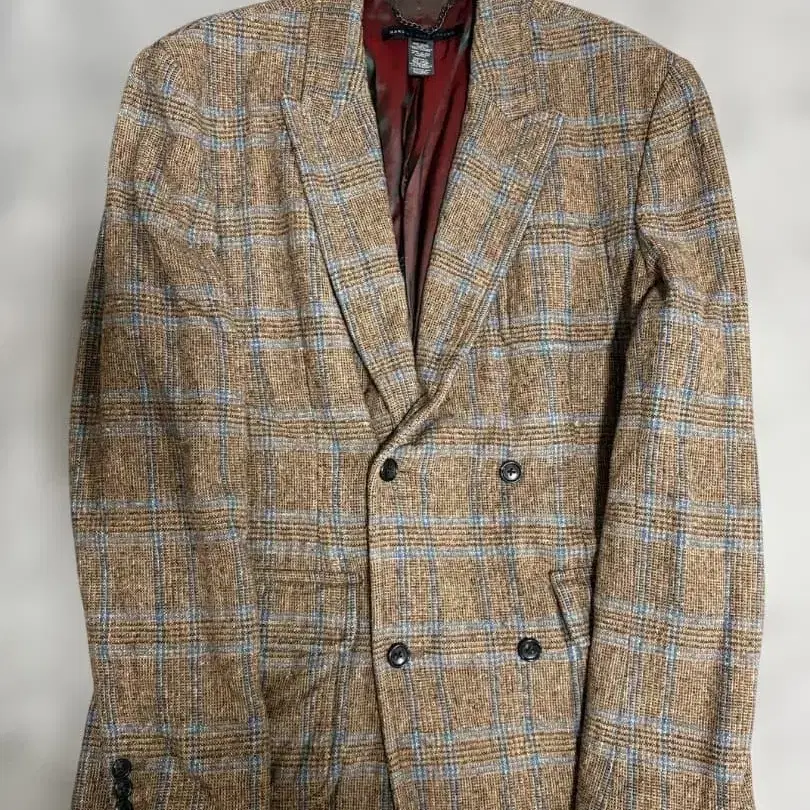 체크 무늬 더블 테일러드 자켓