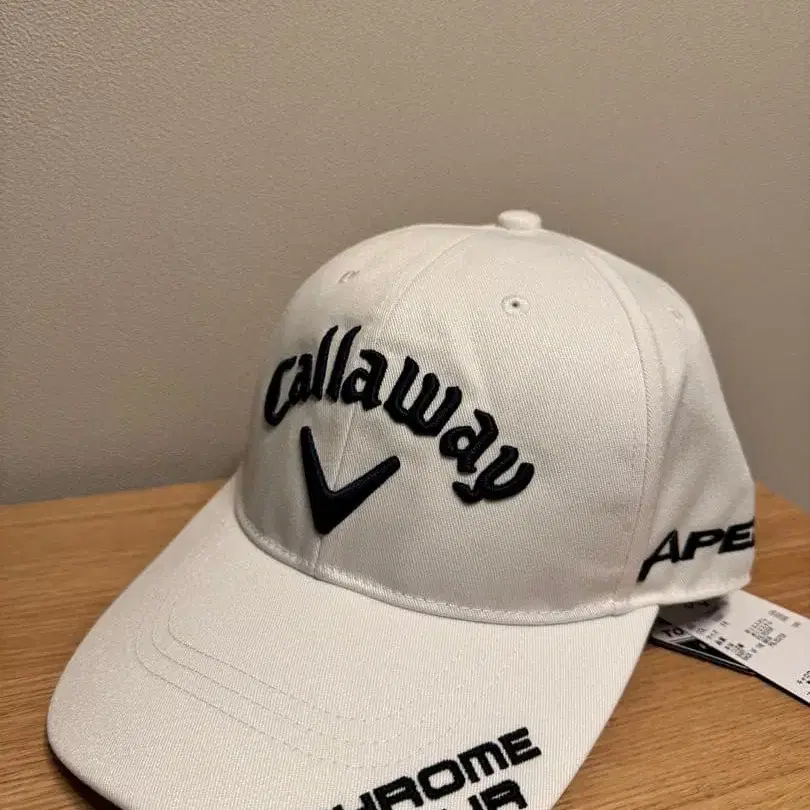 미사용 새상품. 화이트 색상의 Callaway 캡, Apex와 Odyssey 로고 포함.
