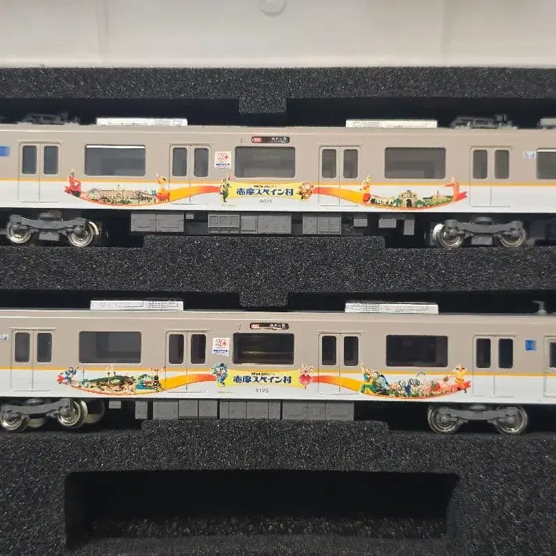 긴테츠 9820계 시마 스페인 마을 랩핑입니다. 작동, 라이트 확인 완료했습니다. 행선지가 점등하는 로트에 시마 스페인 마을 랩핑 인레타를 부착한 특제 완성품입니다. 한쪽 선두차는 TN 커플러, 다른 한쪽은 도로우바 대응이므로 취향에 따라 연결할 수 있습니다. 불명확한 점은 반드시 구매 전에 댓글로 문의해 주십시오. 긴테츠 시리즈 21 시마 스페인 마을 니지산지