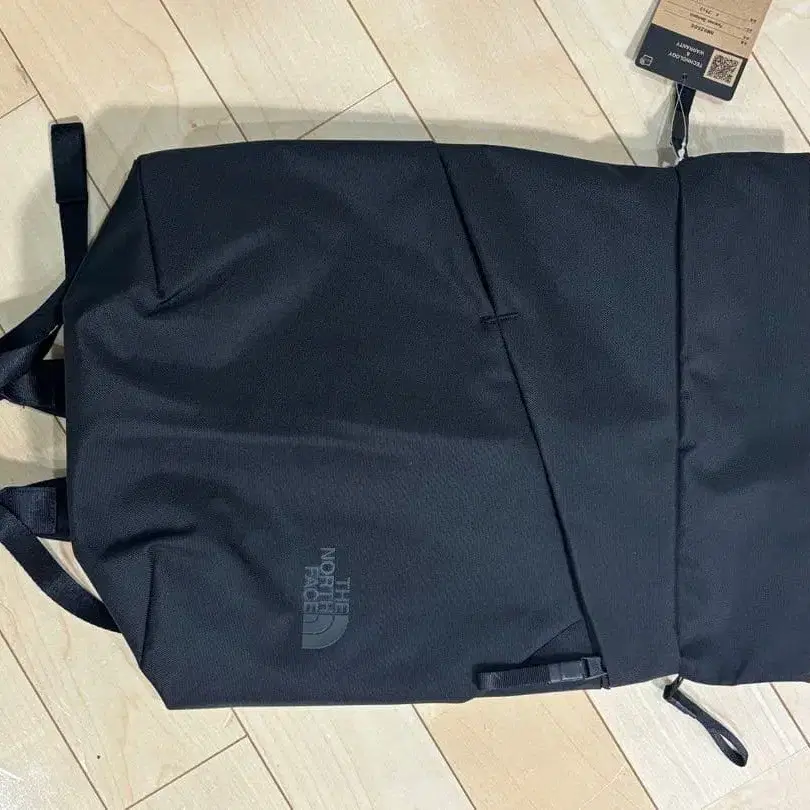 롤탑 디자인의 블랙 백팩, 조정 가능한 숄더 스트랩과 지퍼 달린 포켓이 있습니다. 비즈니스 백으로도 좋을 것 같습니다.