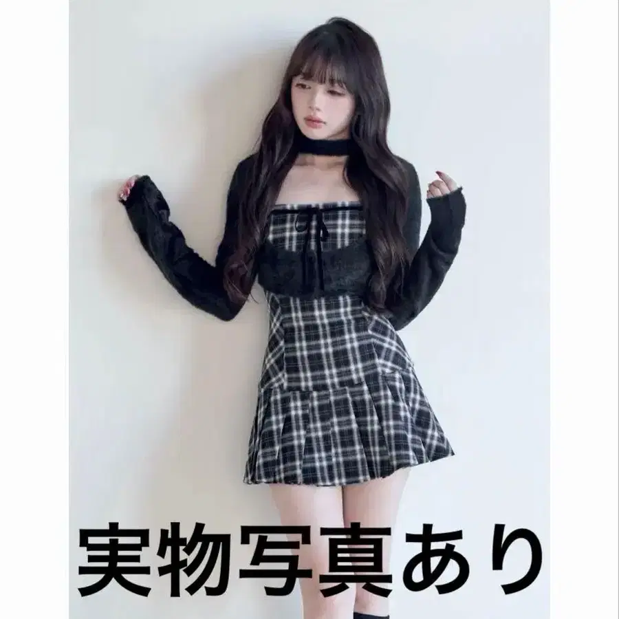 BunnyLis 퍼 볼레로 x 체크 미니 원피스