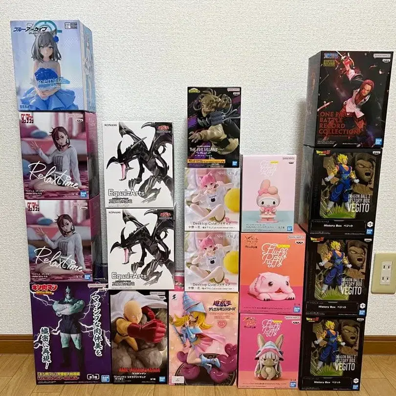 인기 애니메이션 캐릭터의 미개봉 피규어 세트. - 피규어 종류: 애니메이션 코믹 캐릭터 - 수량: 18개 - 상태: 미개봉 - 테마: 인기 애니메이션 캐릭터 프라이스 경품이므로 상자에 흠집이나 얼룩 등이 있을 수 있습니다.
