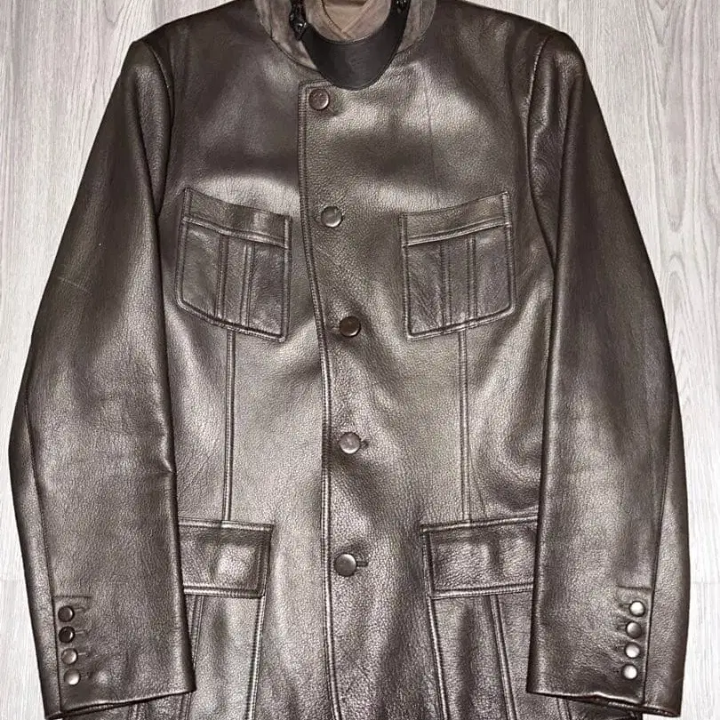 • 새상품급 소가죽 짙은 브라운 가죽 싱글 브레스 자켓 L L