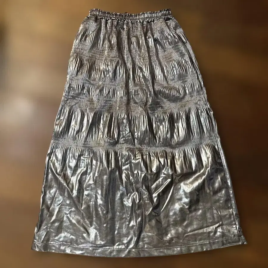 메탈릭 실버 플리츠 롱 스커트 새상품급