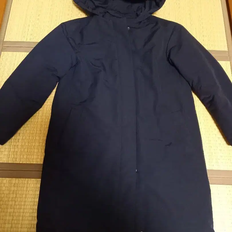 유니클로 심리스 네이비 다운 자켓 후드 부착