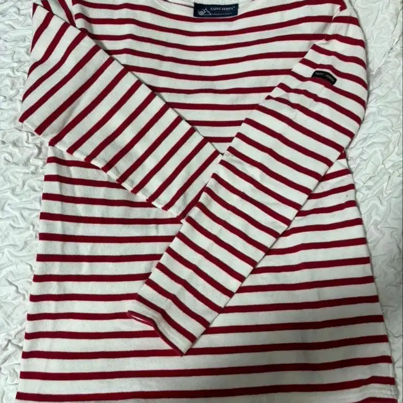 빨간색과 화이트 스트라이프 디자인의 긴팔 T셔츠, 코튼 소재로 쾌적한 착용감.
