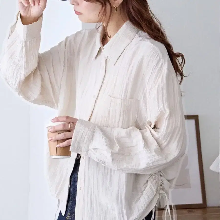 • 허리밴딩 화이트 긴팔 셔츠