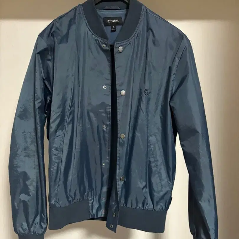 다크 블루 MA-1 플라이트 자켓, 나일론 소재로 경량, 리브 디자인.