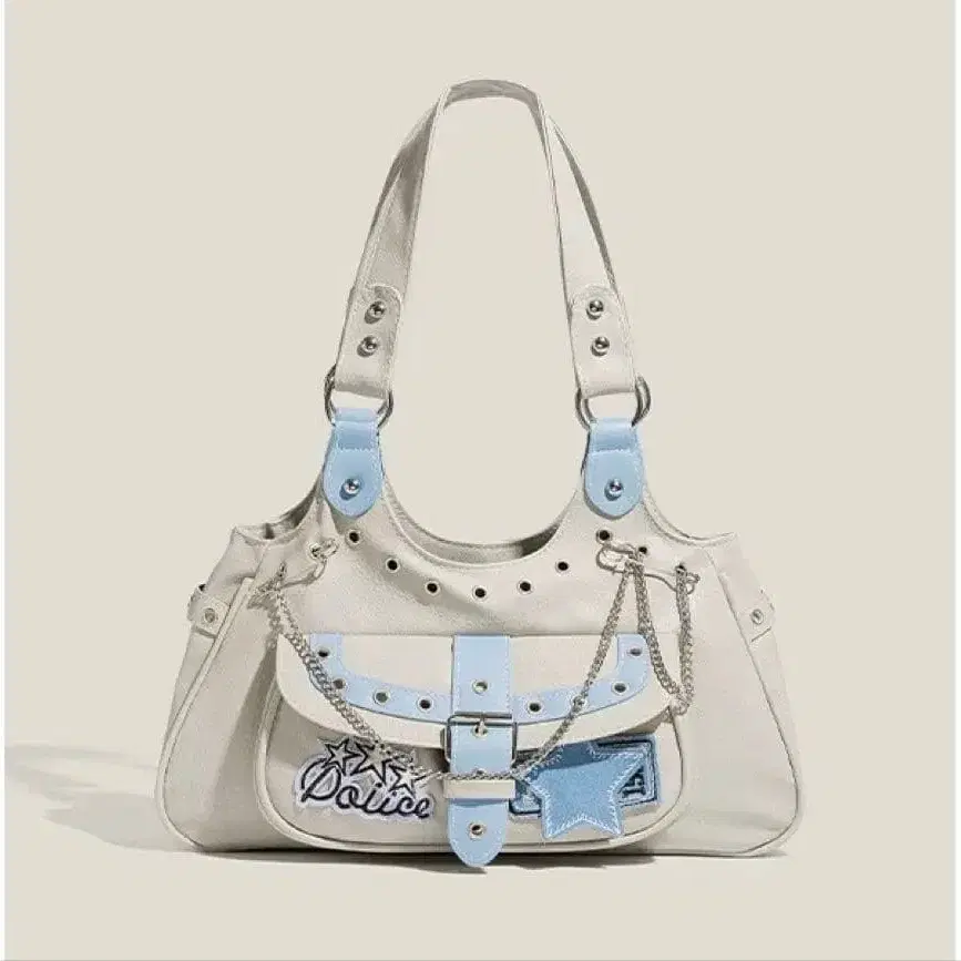 화이트와 스카이블루의 Y2k 토트백