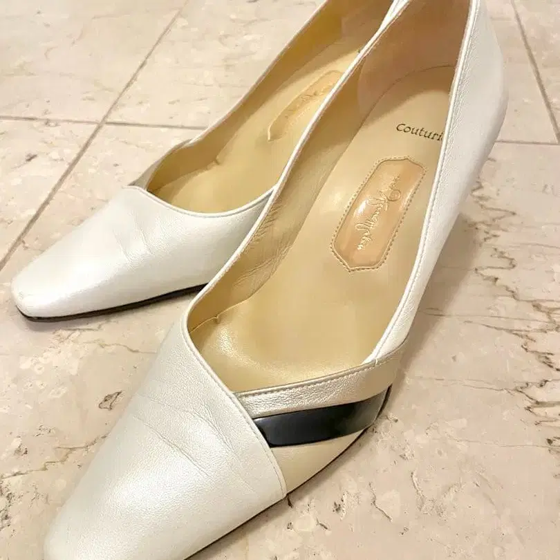 긴자 카네마츠에서 세미 오더한 펌프스입니다. 가죽이 발에 익기 전에 신지 않게 되어 상자에 넣어 보관했습니다. 힐의 고무가 약간 마모되었지만, 전체적으로는 깨끗한 상태라고 생각합니다. - 색상: 화이트 - 디자인: 스틸레토 - 힐 높이: 6~7cm - 소재: 가죽 - 특징: 사이드에 블랙 스트라이프 방문해 주셔서 감사합니다. 사이즈 - 23.5cm 힐 높이 - 5.1~7cm
