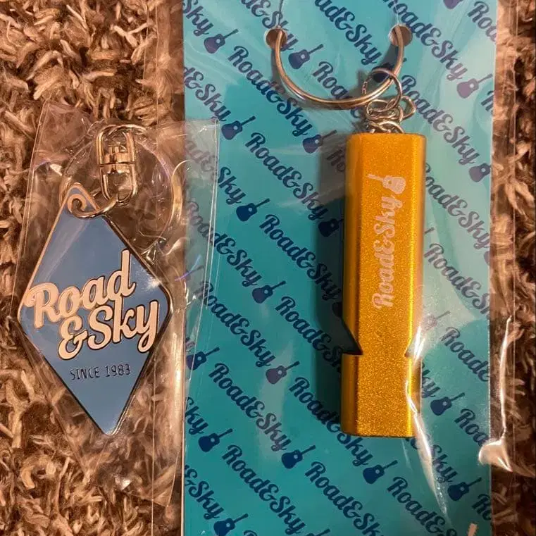 하마다 쇼고 팬클럽 Road&Sky의 파랑 다이아형과 골드 컬러 (호루라기 키) 키링 세트.