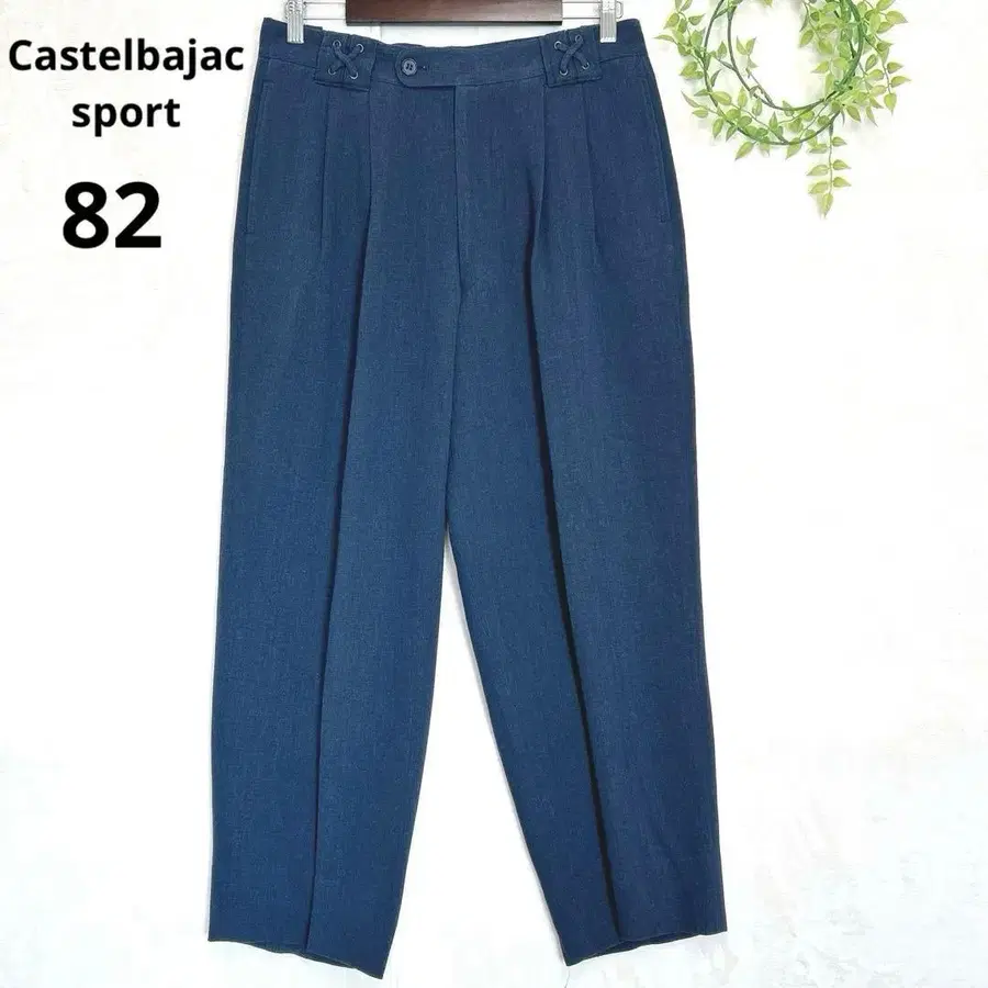 네이비 색상의 더블 플리츠 캐주얼 팬츠