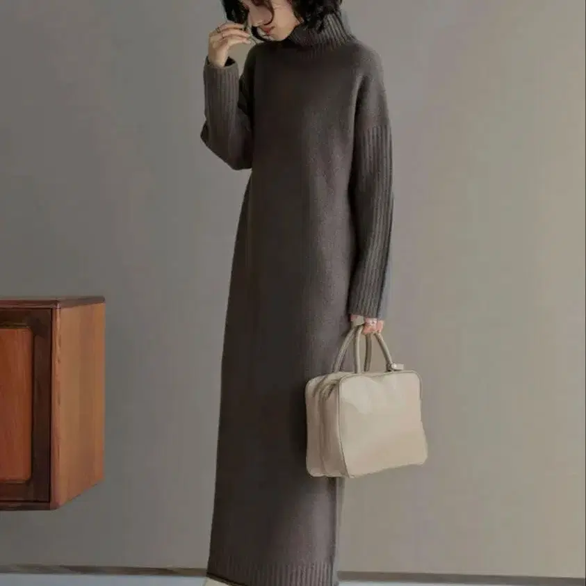 새상품 쫀득한 캐시미어 터치 하이넥 롱 니트 원피스 L 사이즈