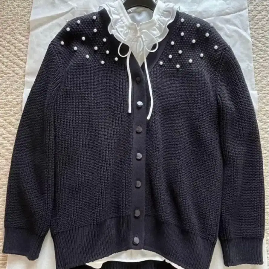 • ACLO 펄 가디건 블랙 오버 사이즈