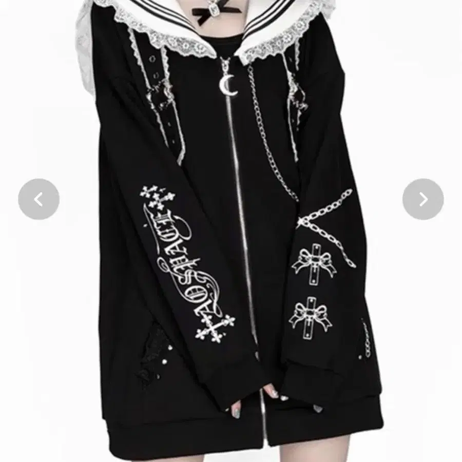 NOVESSEL 고딕 세일러 오버 사이즈 지퍼 후드티