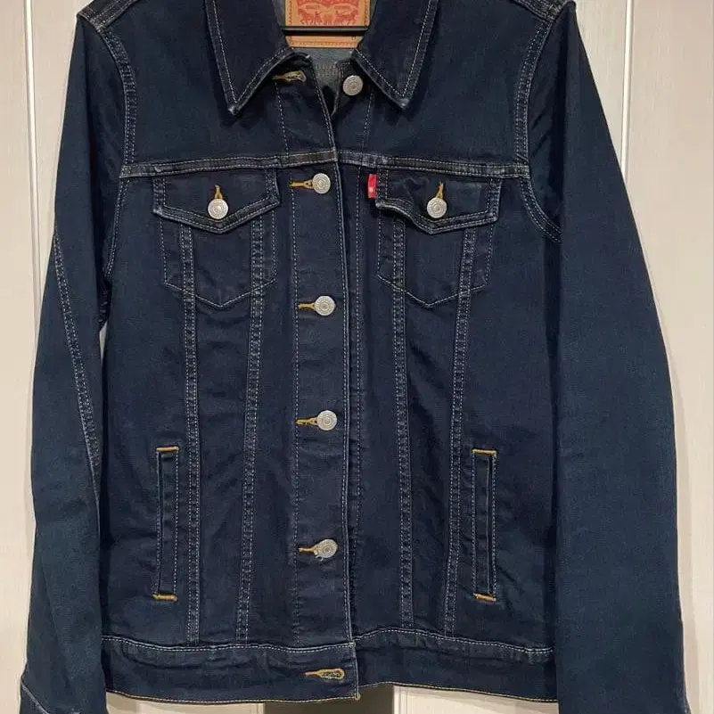 자동 번역되었어요. 원문보기다크 블루 리벳 데님 자켓, 사이즈 M