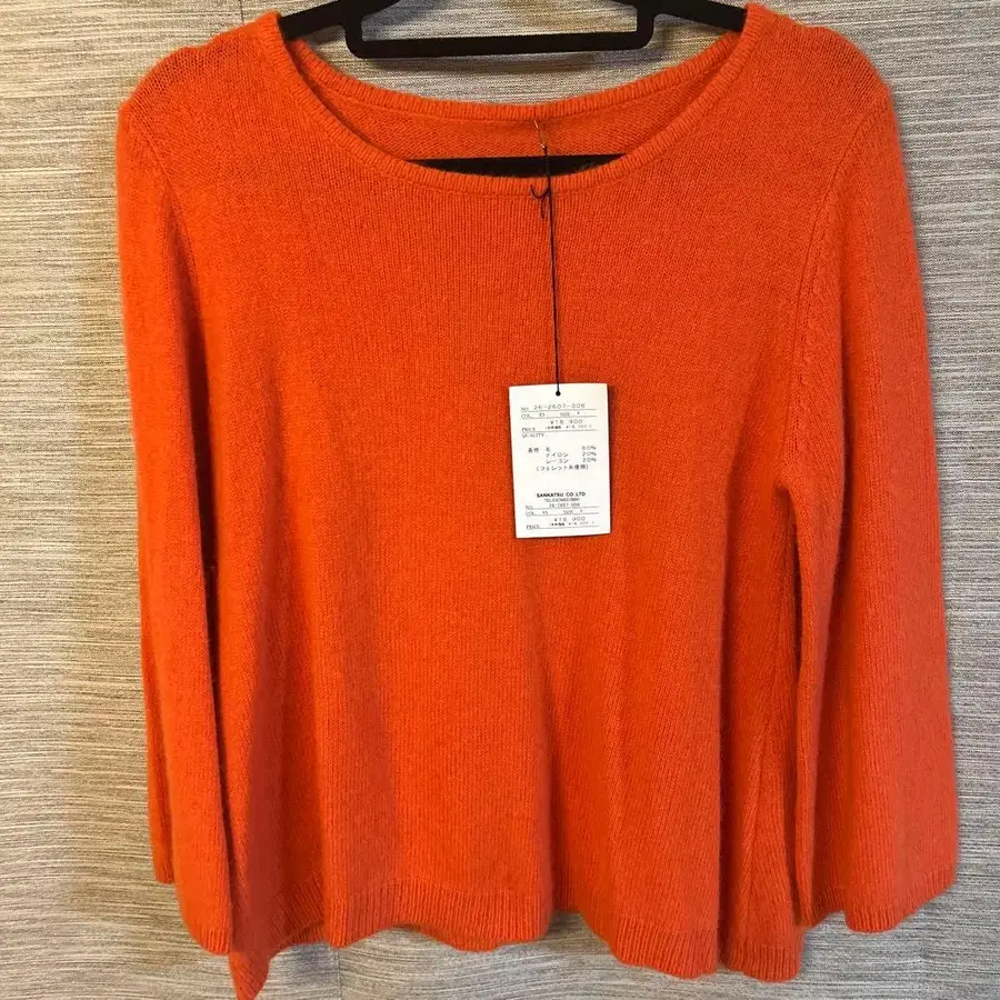 페렛사(ferret yarn)를 사용한 오렌지색 긴팔 니트, 사이즈 F.