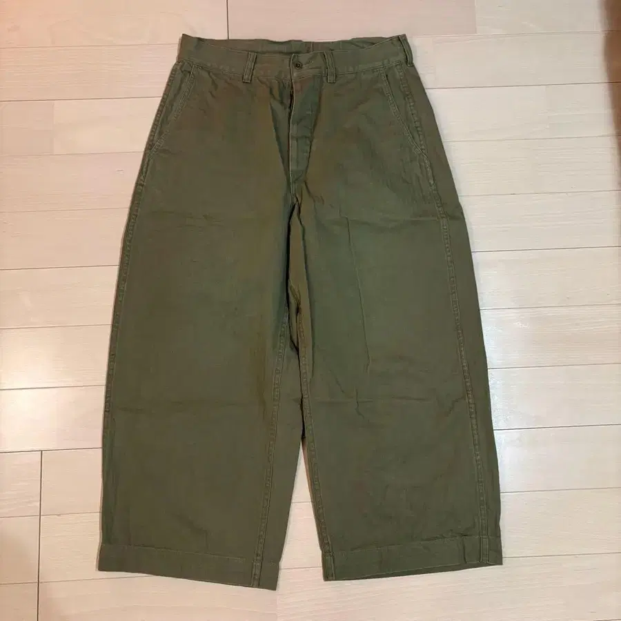 매우 와이드한 실루엣의 치노 팬츠입니다.