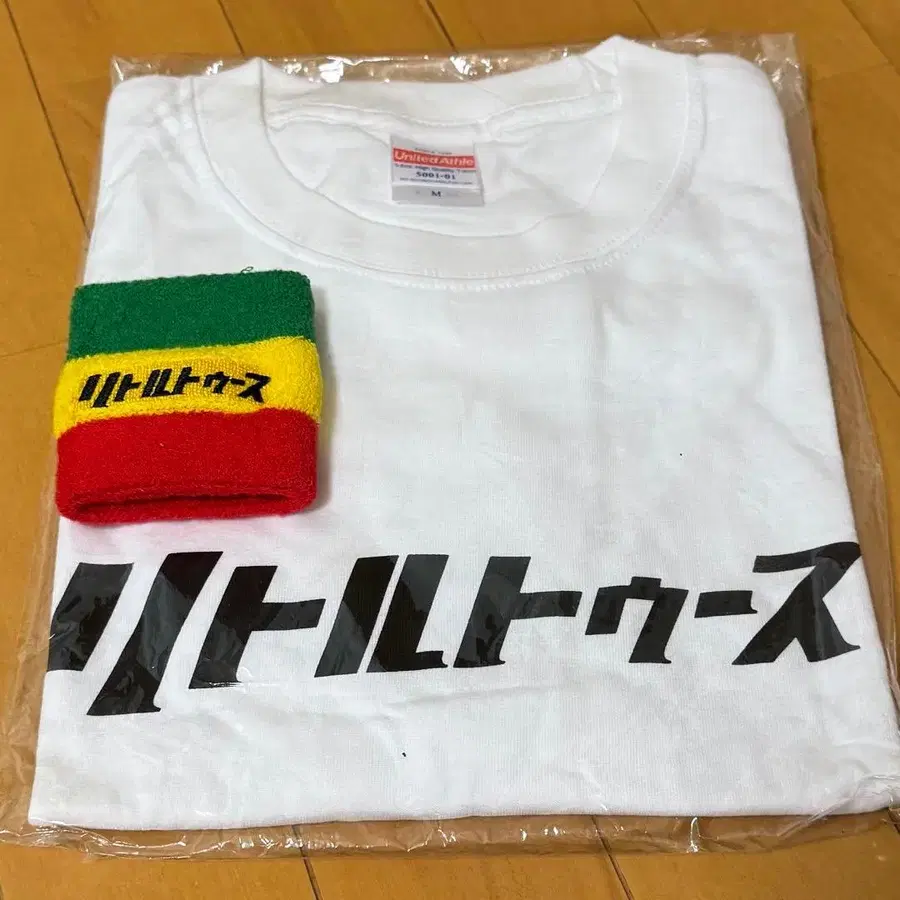 리틀 투스 T셔츠 M 사이즈와 리스트 밴드 세트입니다. T셔츠는 미개봉이며, 리스트 밴드는 라이브 때만 착용했습니다.