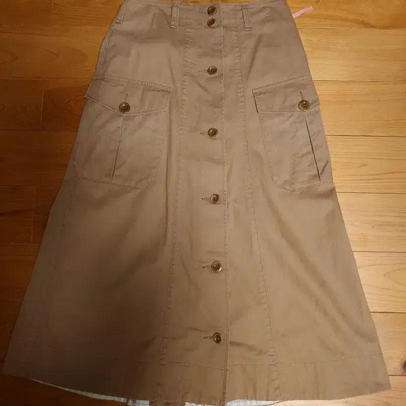 MHL. 플레어 롱 스커트 - 색상: 베이지 (사진과 실제 색감이 다를 수 있습니다.) - 스타일: 플레어 롱 스커트 - 버튼: 앞면 단추식 - 소재: 면 75%, 린넨 25% - 안감: 없음 - 총길이: 약 83cm 방문해 주셔서 감사합니다. 풍성하게 퍼지는 플레어는 아니지만, 탄탄한 소재로 체형을 커버하기 좋은 디자인입니다. 한겨울 가장 추운 시기를 제외하고는 착용 가능할 것 같습니다. 드라이클리닝 완료했습니다. 중고품이라는 점을 이해해 주시는 분, 검토 부탁드립니다.