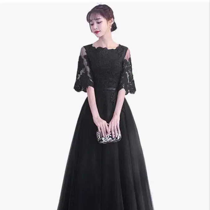 2회 정도 착용했습니다. 중고품이라는 것을 이해하신 후 검토해 주세요. 신장 158cm일 때 밑단이 바닥에 살짝 닿는 정도였습니다. 등 부분에 지퍼가 있습니다. 혼자서 탈착이 가능했습니다. 레이스 소매의 블랙 롱 드레스, 파티나 연주회에 최적. - 브랜드: TRVELBETT - 색상: 블랙 - 스타일: 롱 드레스 - 소매 스타일: 레이스 소매 - 용도: 파티, 연주회, 결혼식 방문해 주셔서 감사합니다.