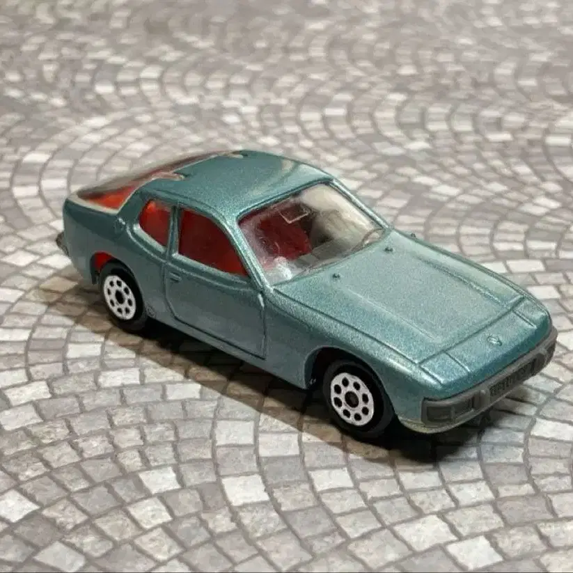 메탈릭 그린 색상의 포르쉐 924, 레드 내부, 1/64 스케일 미니카.