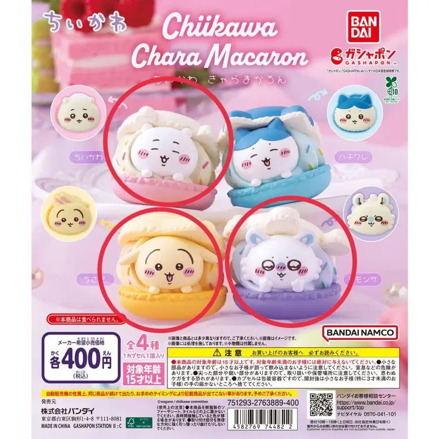 치이카와 (먼작귀) 캐릭터 마카롱 하치와레 토끼 모몽가 4종 컴플리트