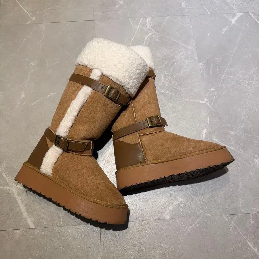 스웨이드와 퍼의 콤비네이션으로 스타일리시한 어그 부츠. - 색상: 브라운 - 소재: 스웨이드, 퍼 - 디자인: 버클 포함, 보아 포함 - 스타일: 어그 부츠 - 밑창: 러버 솔 사이즈 23.5 ~ 24.0 방문해 주셔서 감사합니다.
