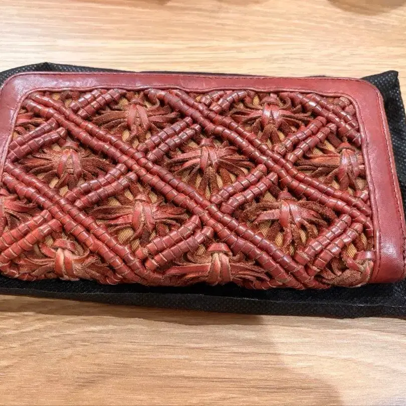 브라운 장지갑, 입체적인 뜨개질 디자인이 특징.