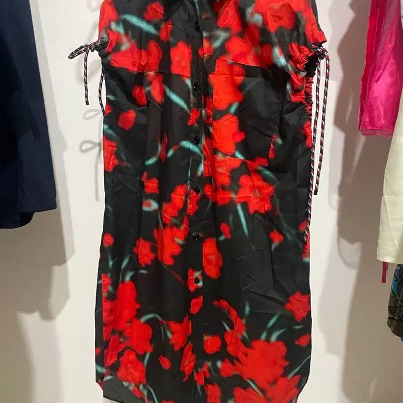 플라워 프린트 셔츠 원피스, 드로우 스트링으로 스타일리시하게. - 브랜드: DRIES VAN NOTEN - 색상: 블랙/레드/그린 - 디자인: 플라워 프린트 - 스타일: 셔츠 원피스 - 특징: 드로우 스트링 포함 방문해 주셔서 감사합니다. 사이즈 - S