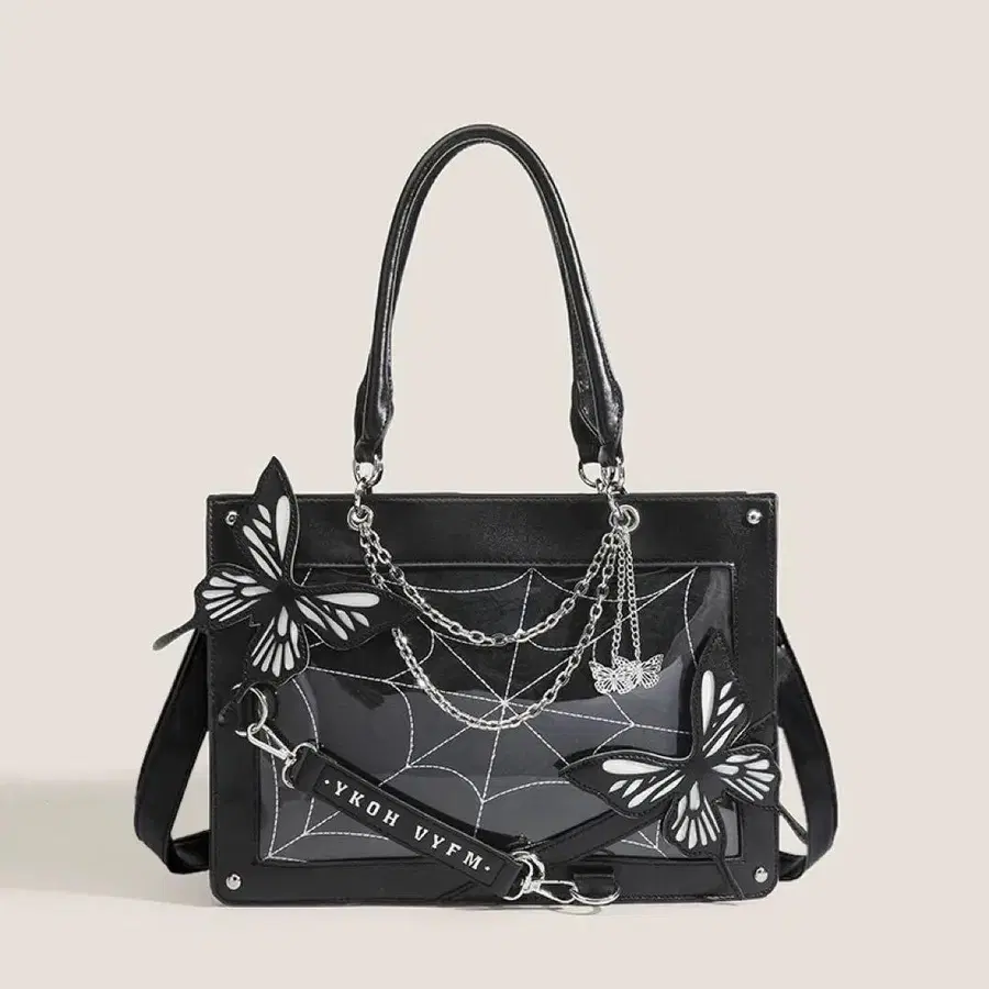나비와 거미줄 디자인이 특징인 이타백 토트백. 새상품급 상태입니다 ♪ - 디자인: 블랙 컬러 토트백, 나비와 거미줄 장식 - 소재: 합성 피혁 - 스트랩: 조정 가능한 숄더 스트랩 포함 - 사이즈: 중간 - 특징: 체인 장식과 비주얼 엘리먼트 이타백! 방문해 주셔서 감사합니다.
