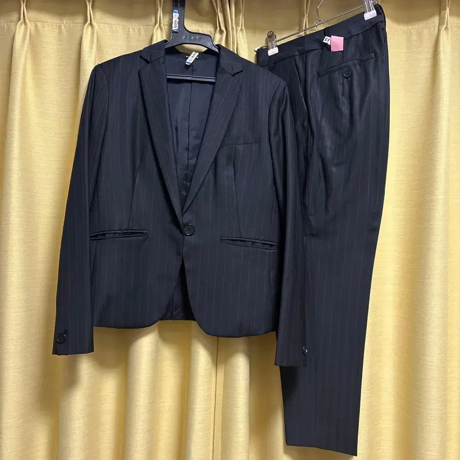 자동 번역되었어요. 원문보기블랙 스트라이프 정장 세트, 유럽 패브릭 사용.