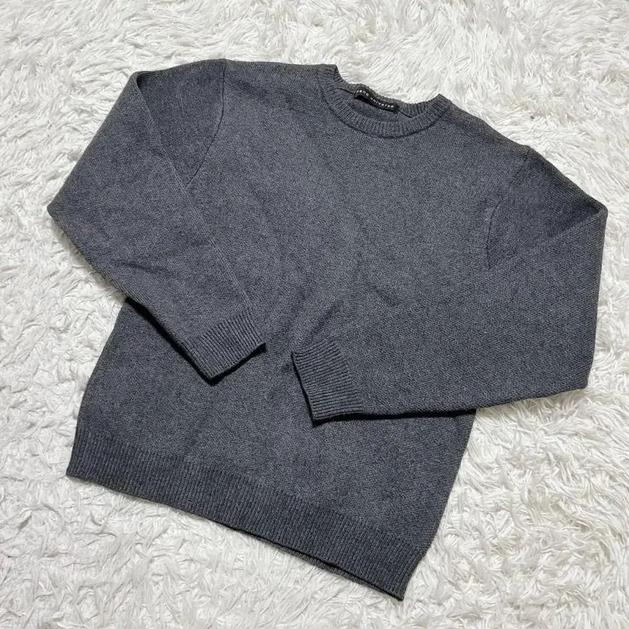 심플한 디자인의 그레이 크루넥 니트 스웨터.