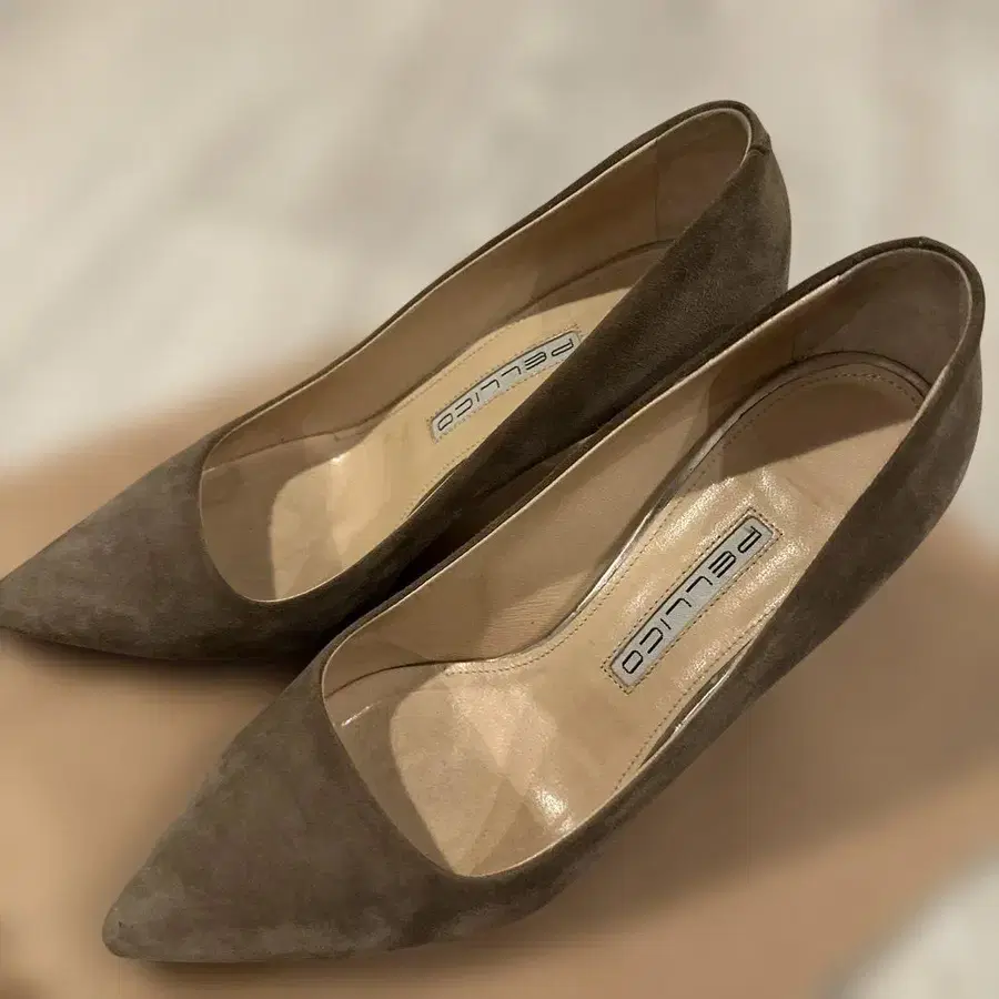 태양광에서는 조금 더 옅은 베이지 브라운 계열의 색으로 보입니다. 펠리코의 펌프스는 가볍고 걷기 편합니다. 약간의 흠집 등이 있으니 사진으로 확인해 주세요. 힐 7.5-8cm 스웨이드 소재의 하이힐 펌프스. - 브랜드: PELLICO - 색상: 그레이 - 소재: 스웨이드 - 굽 높이: 중간 굽 방문해 주셔서 감사합니다. 사이즈 - 23cm