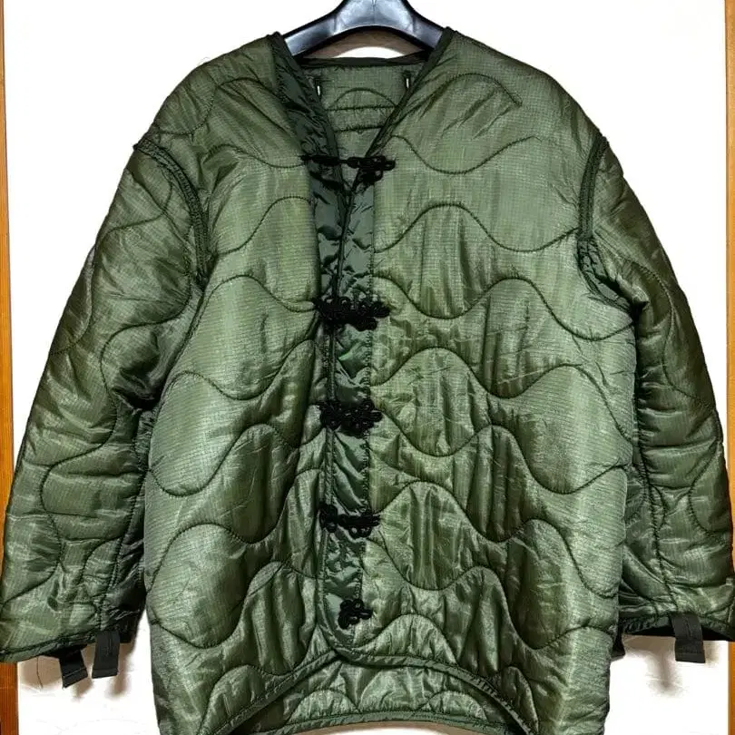 이곳에서 구매하였으나, 저에게는 어울리지 않아 판매합니다. 리메이크 퀼팅 라이너 자켓 카키 차이나 버튼 느슨함 다소 있음 상품의 특성상, 실이 나와 있거나 올풀림이 있는 부분이 있습니다. 겨드랑이 밑 부분이 트인 타입 포켓 없음 가슴 너비 약 60 기장 약 71 개인 측정입니다. 약간의 오차는 양해 부탁드립니다. 눈에 띄는 얼룩 등은 없지만, 구제 의류, 리메이크, 빈티지 상품에 동의하시는 분은 자기소개를 읽어보시고 구매 부탁드립니다.