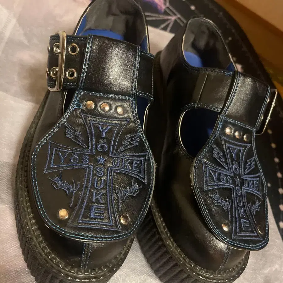 미사용 새상품 YOSUKE 요스케 통굽 로퍼 십자가 마크